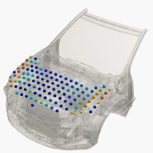 To ensure pedestrian protection, engineers must evaluate hundreds of impact scenarios, different body types (for instance children versus adults), varying speeds and angles, and numerous impact locations across the hood. Each of these scenarios traditionally requires a full-scale finite element analysis (FEA) simulation. These simulations are time and resource-intensive, often taking two hours per test and using up to 256 CPUs per run.